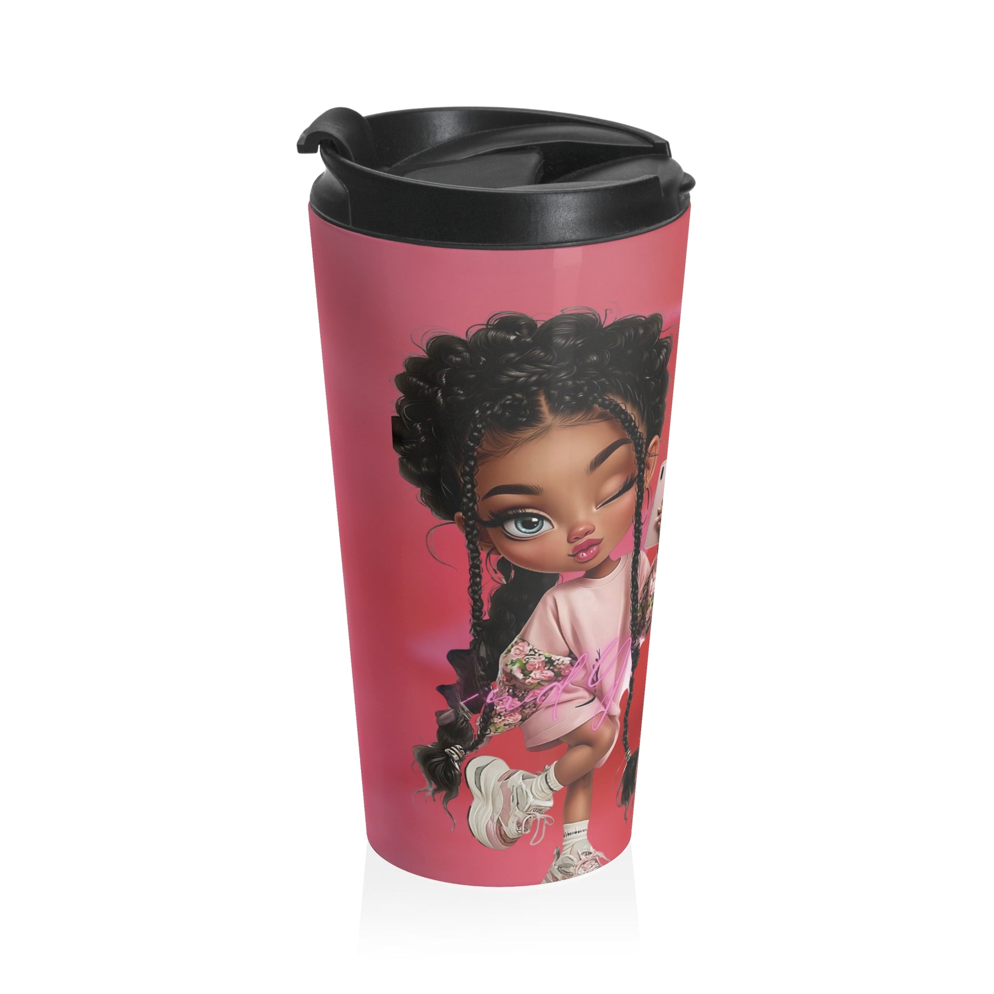 Travel Mug — Cute Afro Girl Cartoon Design Stainless Steel Tumbler